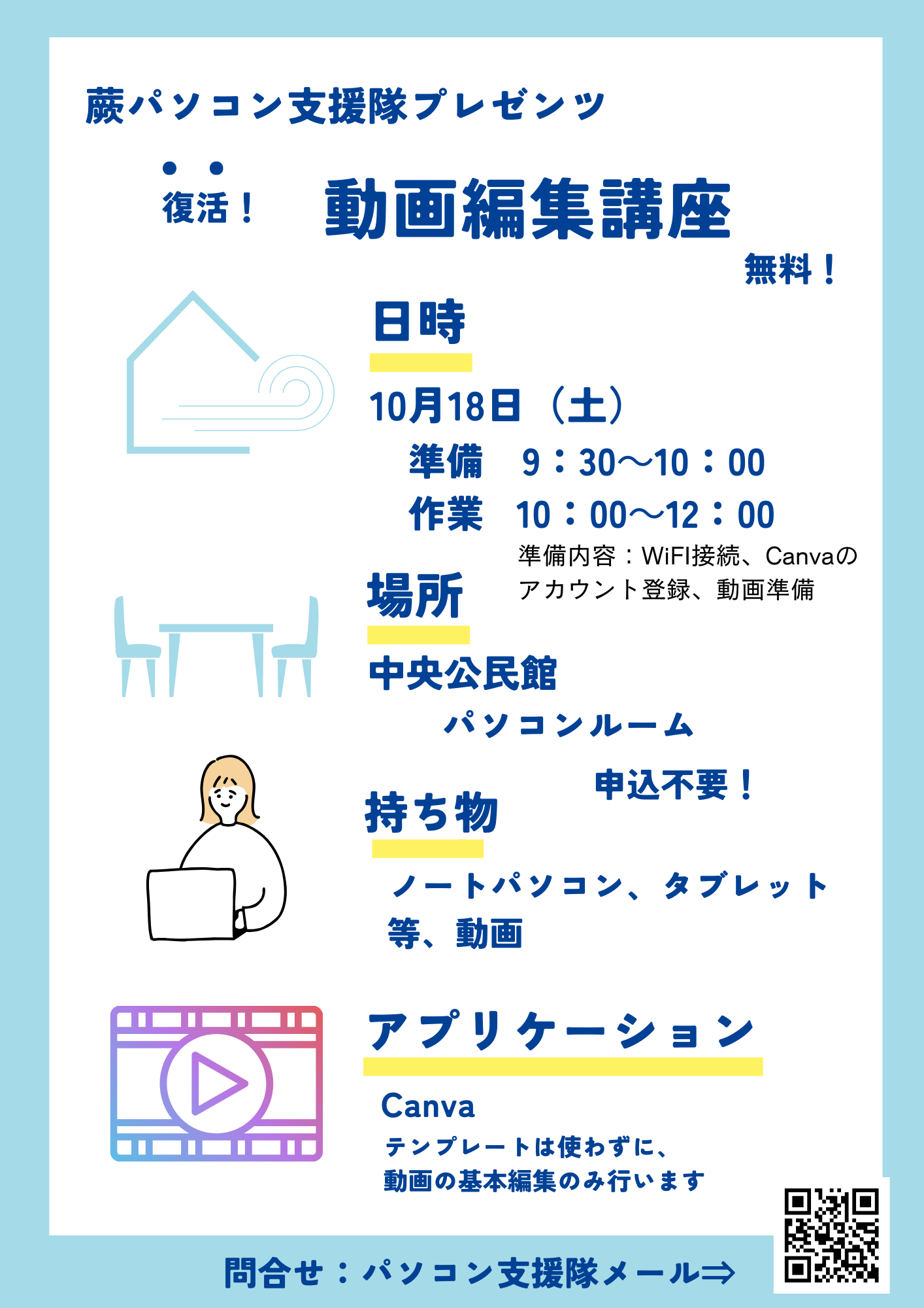 「蕨パソコン支援隊」より 「動画編集講座のお知らせ」