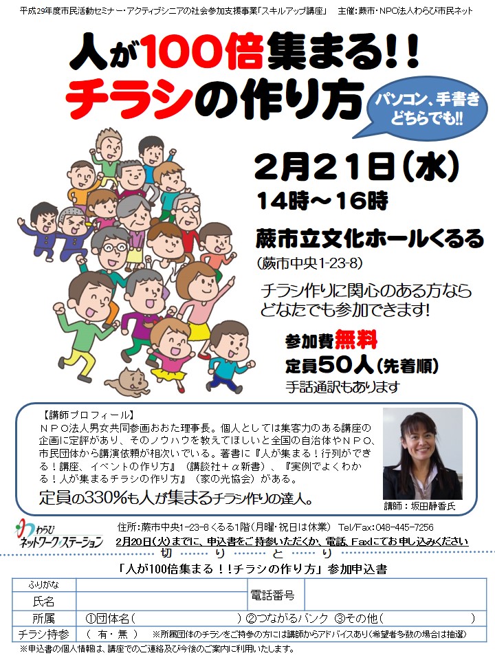 平成29年度市民活動セミナー・スキルアップ講座【人が100倍集まる!チラシの作り方】は開催終了しました。